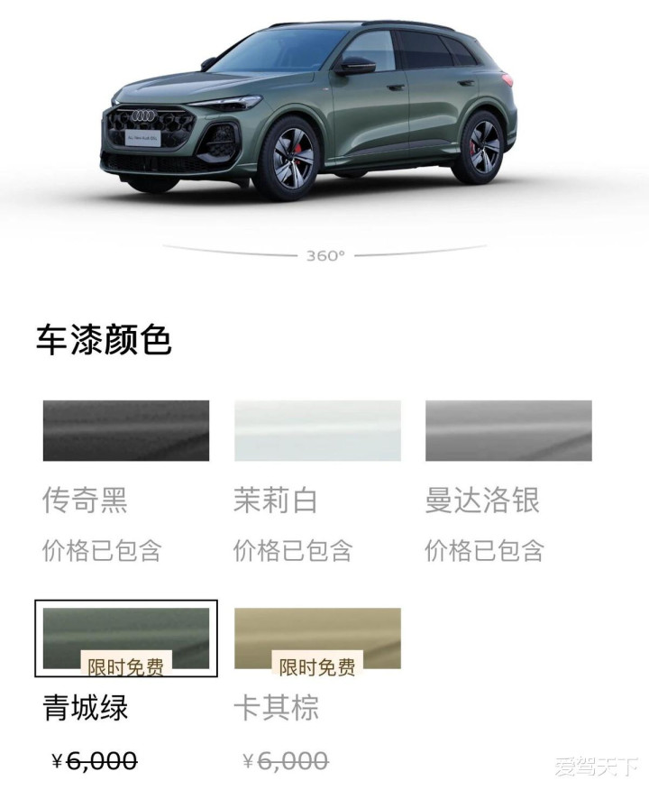 另外,青城绿和卡其棕这两款特殊车漆也加入限时免费清单,这样一来全系共有五款免费车漆可选。